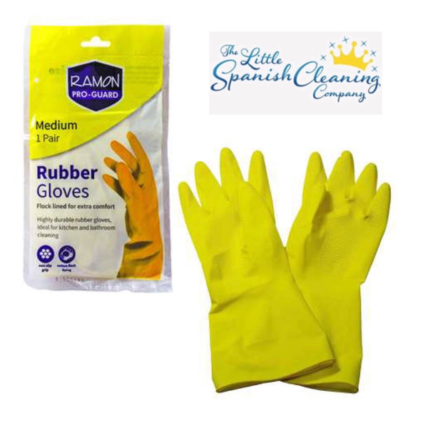 Highly durable rubber gloves, ideal for kitchen and bathroom cleaning.