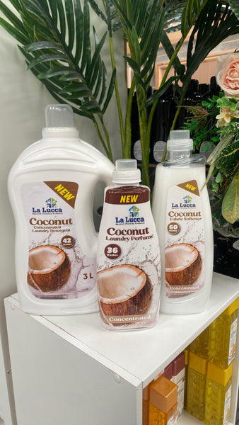 The most gorgeous coconut scented detergent that cleans your beautiful laundry along with our very strong coconut softener finishing off with a bottle of the intense coconut laundry perfume to give your washing and intense boost! made with love and passion