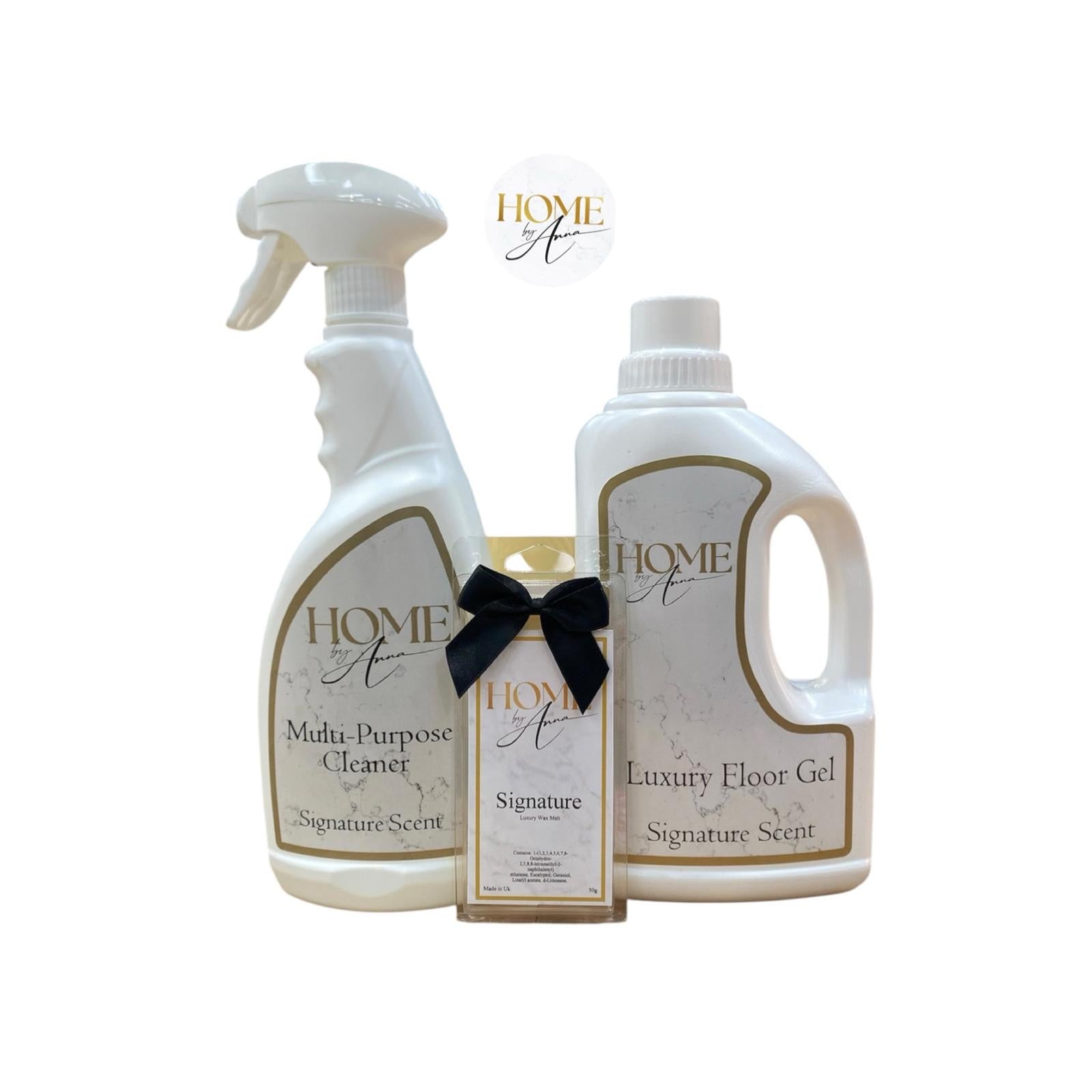 This bundle includes the luxury foaming floor gel , a 5 piece snap bar wax pack and an all round kitchen ready to go spray in our unique scent .