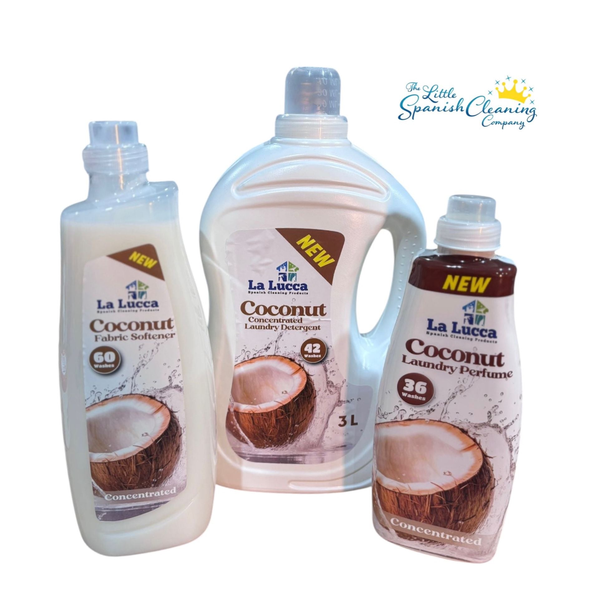 The most gorgeous coconut scented detergent that cleans your beautiful laundry along with our very strong coconut softener finishing off with a bottle of the intense coconut laundry perfume to give your washing and intense boost! made with love and passion