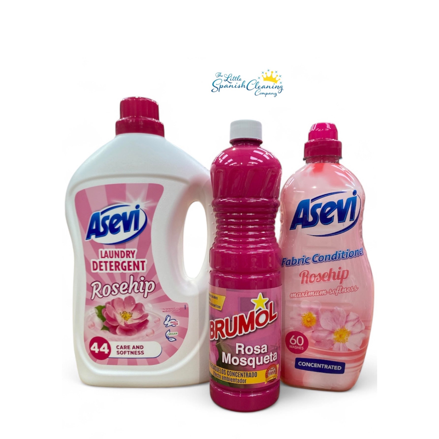 Detergent, Fabric Conditioner & All Round Cleaner in this highly fragrances bundle in the popular Rosa Mosqueta fragrance .