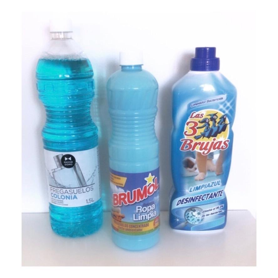๐ 3 Brujas Disinfectant- Limpiazul a 1 litre bottle of concentrated cleaner with a string cologne fragrance.ย