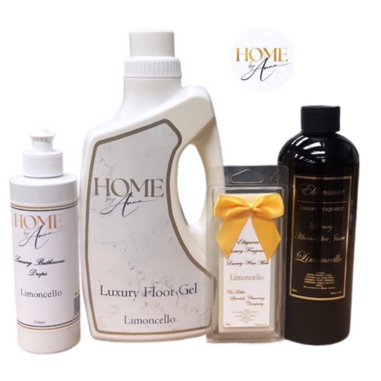 Introducing the Limoncello Scented Lemon Bundle, a delightful collection of three products that will add a touch of luxury and relaxation to your home. The bundle includes a humidifier juice, a wax melt snap bar pack, Luxury Bathroom Drops and a luxury foaming floor gel.