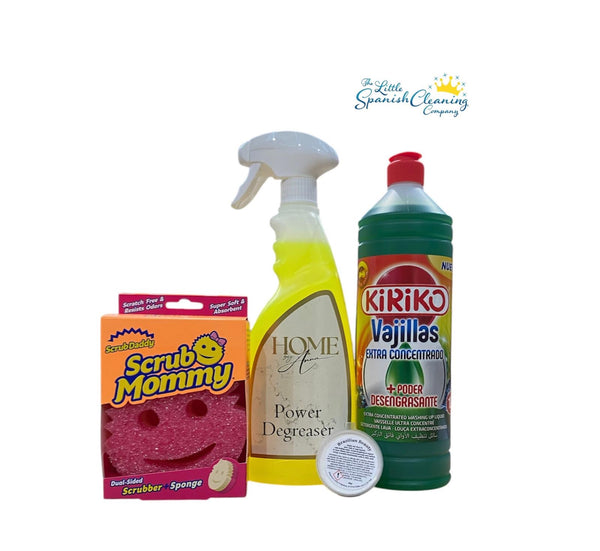 Concentrated Kiriko washing up liquid , Home By Anna Degreaser Spray , Scrub Mommy Sponge and a sink fizzy