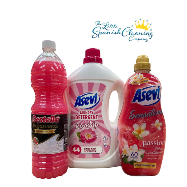 Fruity bright and zesty, strawberry sensation fabric conditioner. matches beautifully with the Rosa Mosqueta detergents.