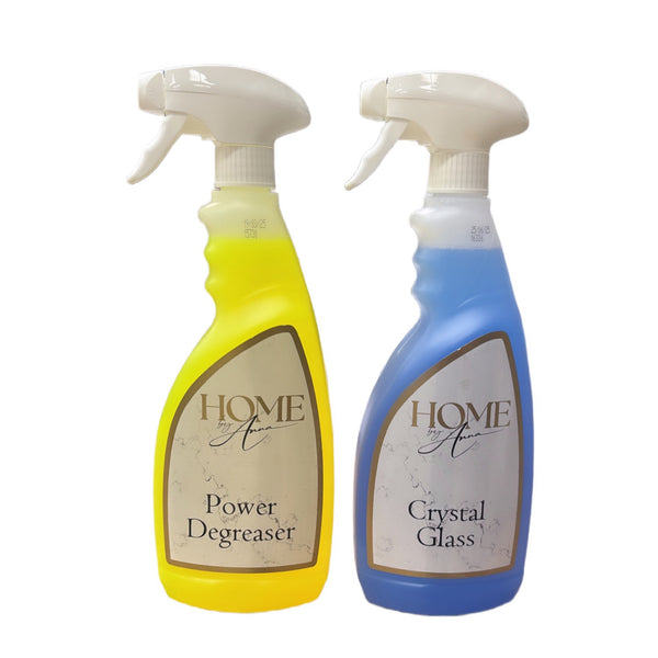 We are so proud to launch 2 home essential sprays a beautiful lemon scented degreaser and a no nonsense glass cleaner leaving mirrors , glass, screens gleaming with a crystal finish.